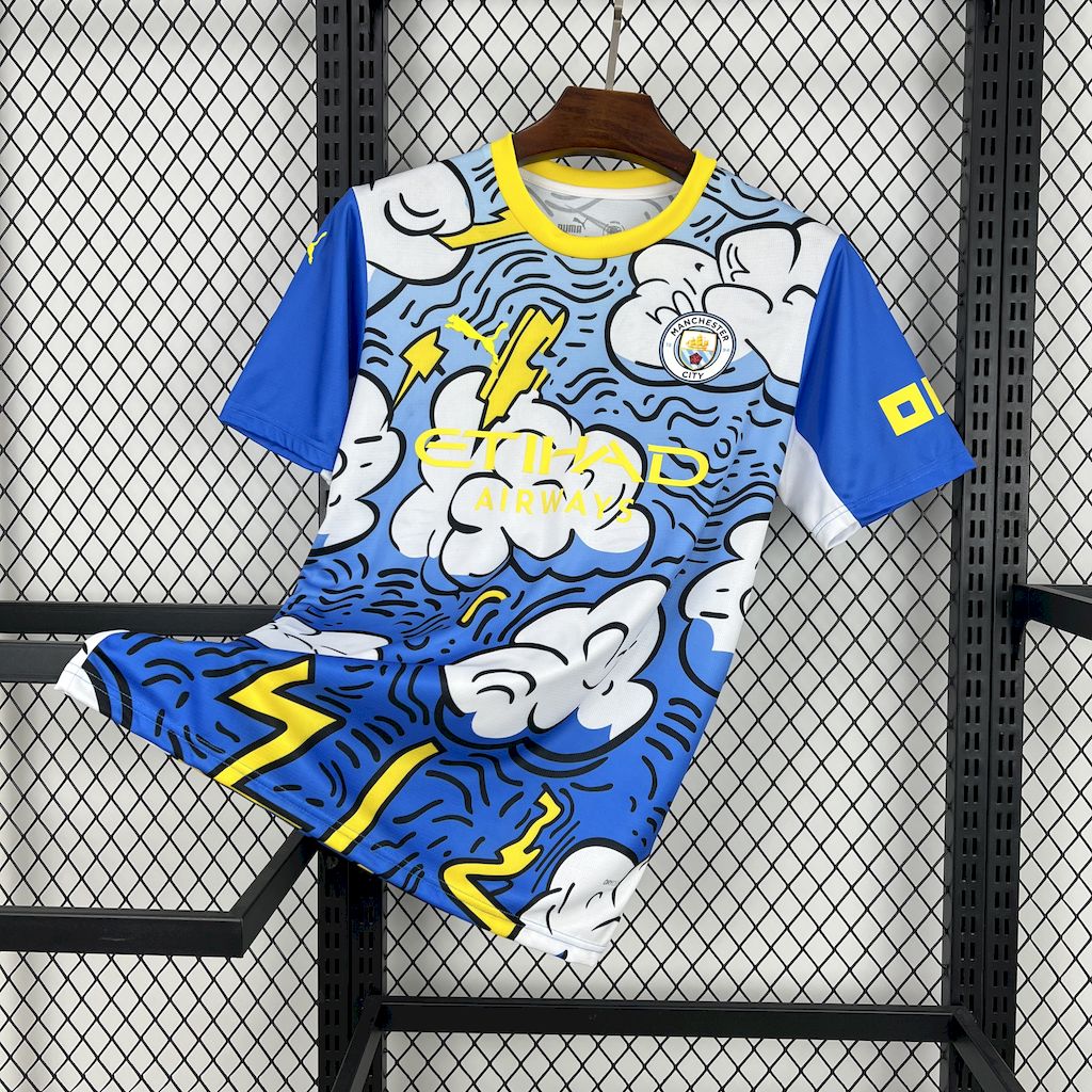 Camiseta Manchester City Edición Especial Azul y Blanco 2025/26 Versión Fan